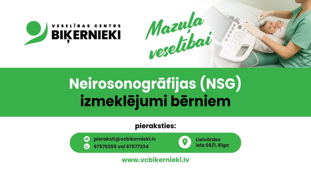 Veselības centrā “Biķernieki” piedāvājam neirosonogrāfijas izmeklējumus zīdaiņiem līdz trīs mēnešu vecumam – drošu, nesāpīgu un efektīvu metodi, kas ļauj izvērtēt galvas smadzeņu attīstību jaundzimušajiem un zīdaiņiem jau agrīnā vecumā.